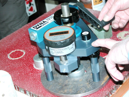 Aus diesem Wert kann die Oberflächenzugfestigkeit berechnet werden (DIN 1048 Teil 2). Sehr wichtig für ein einwandfreies Versuchsergebnis ist eine tatsächlich zentrierte Einleitung der Zugkraft ohne ungewollte Biegemomente durch z.B. Verkanten der Abzugsplatte. Als Variante des Versuchs kann der Bereich, der abgezogen werden soll, bis in eine gewünschte Tiefe mit einem Spezialbohrer freigebohrt und so die Festigkeit in tieferliegenden Bereichen geprüft werden. Wegen des Einflusses von Seitenkräften ist diese Methode allerdings mit Unsicherheiten verbunden. Das für den Abreiß-Versuch angewandte Prinzip wird z.T. mit identischen Geräten auch zur Haftzugprüfung eingesetzt. Das Verfahren entspricht in seiner Durchführung dem Abreiß-Versuch. Hier bei der Haftzugprüfung liegt jedoch die Fragestellung in der Haftzug-Festigkeit zwischen unterschiedlichen Schichten der Bauwerkshaut. Für die Haftzugprüfung werden z.T. dieselben Geräte verwendet wie für den Abreiß-Versuch. Es genügt jedoch zur Durchführung des Versuches i.d.R. eine kleinere Maximalkraft, als für den Abreiß-Versuch (dort bis zu 40 kN).